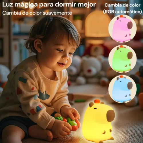 ¡La compañía más tierna para sus noches! Esta lámpara táctil de silicona suave con diseño de Capibara ilumina con calidez y estilo. Con modos de luz cálida regulable y una función mágica multicolor (RGB), es el regalo perfecto para transformar cualquier habitación en un espacio relajante y lleno de personalidad.